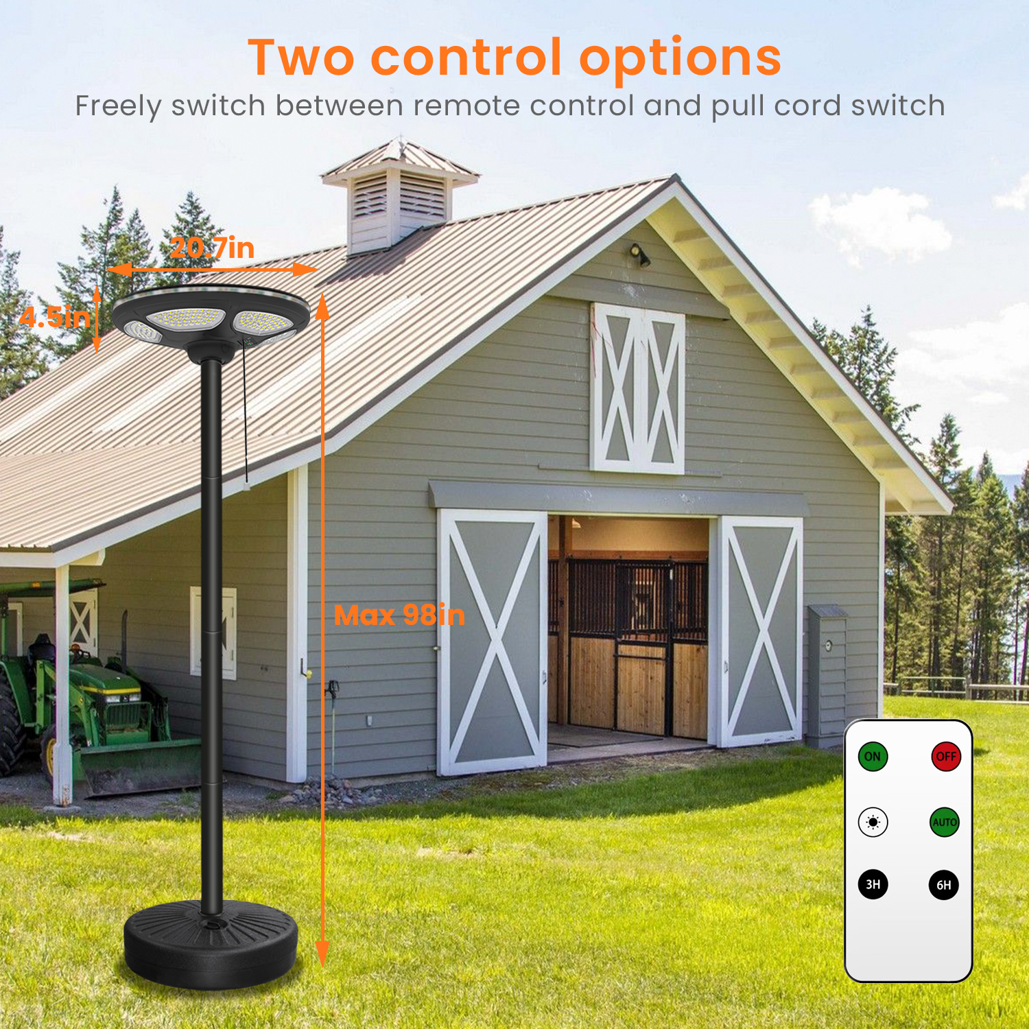 - Flexible Control — The solar outdoor light features both a pull switch and a remote control, allowing you to control the light mode even when the remote is not available.