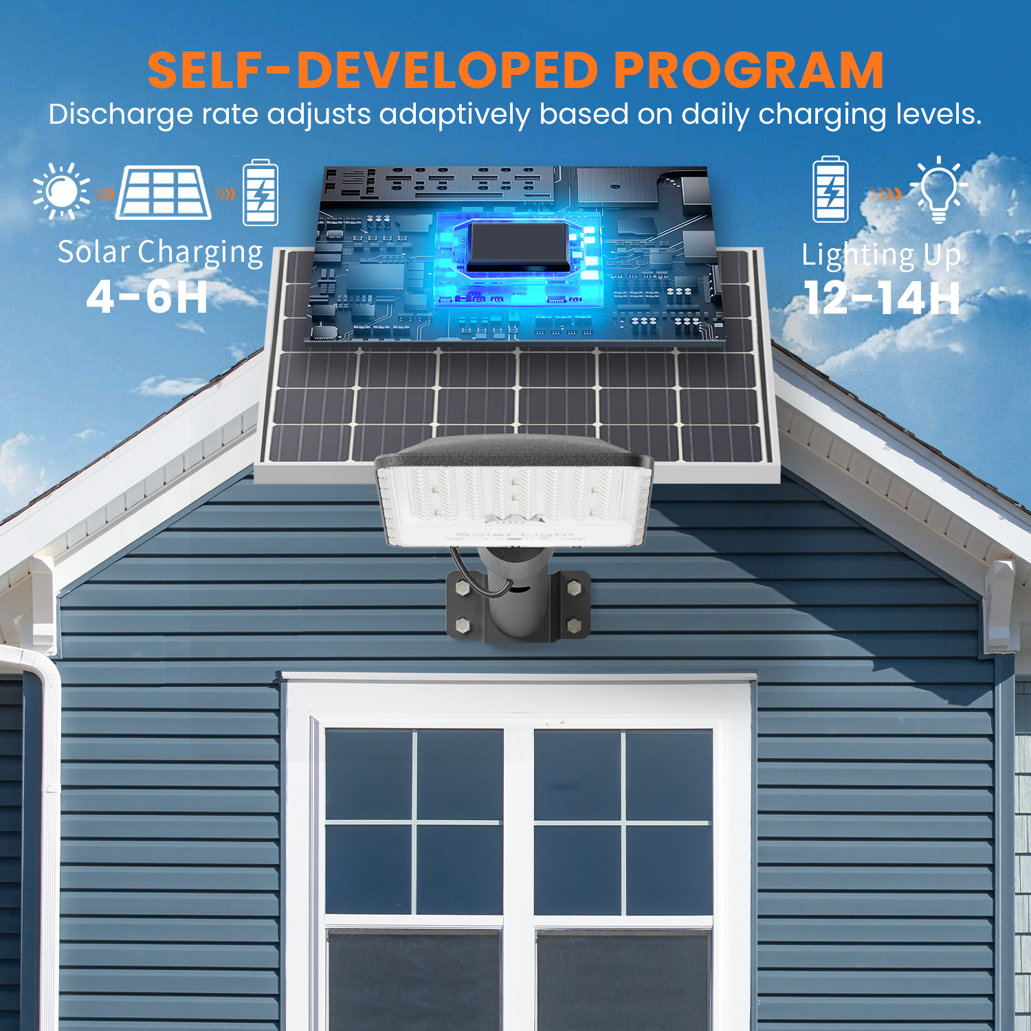 - [Self-developed Program]: The solar light features a self-developed chip, dusk to dawn, automatically turning on and off. It intelligently optimizes discharge modes by adjusting based on daily charging levels, ensuring over 12 hours of continuous illumination when fully charged